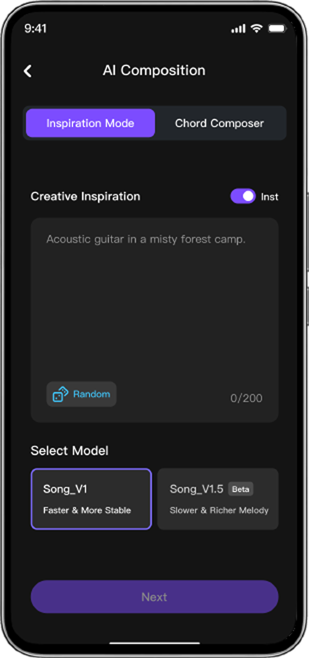 With text-to-song and chord-to-song modes, Melo-D’s generative AI helps you compose complete tracks — with lyrics and AI vocals included.