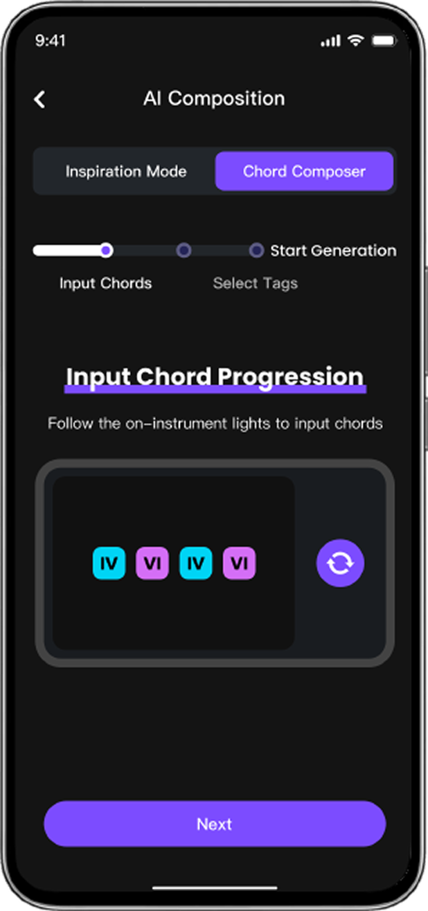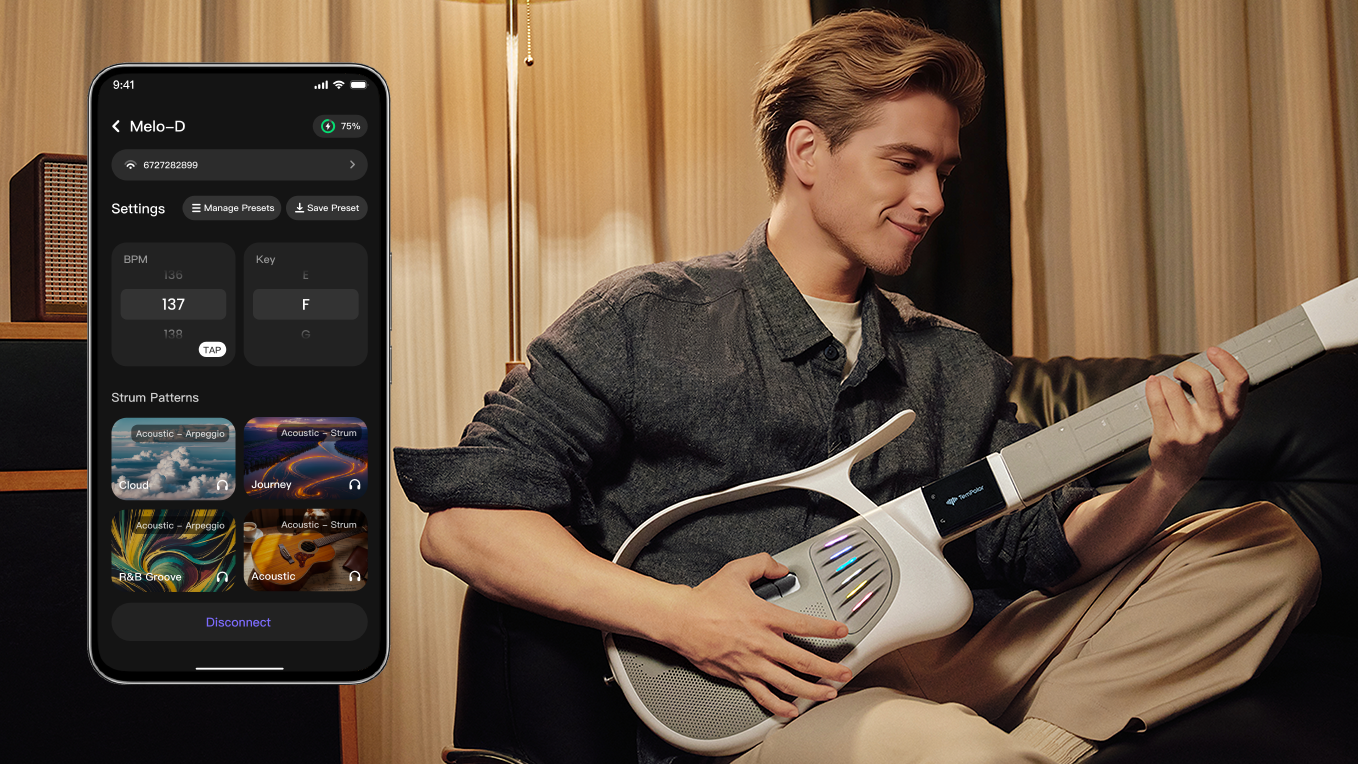Powered by Melo-D’s proprietary AI engine, your humming becomes a melody in seconds, synced directly to the guitar. Inspiration becomes performance in seconds, lowering the barrier to music creation for all.